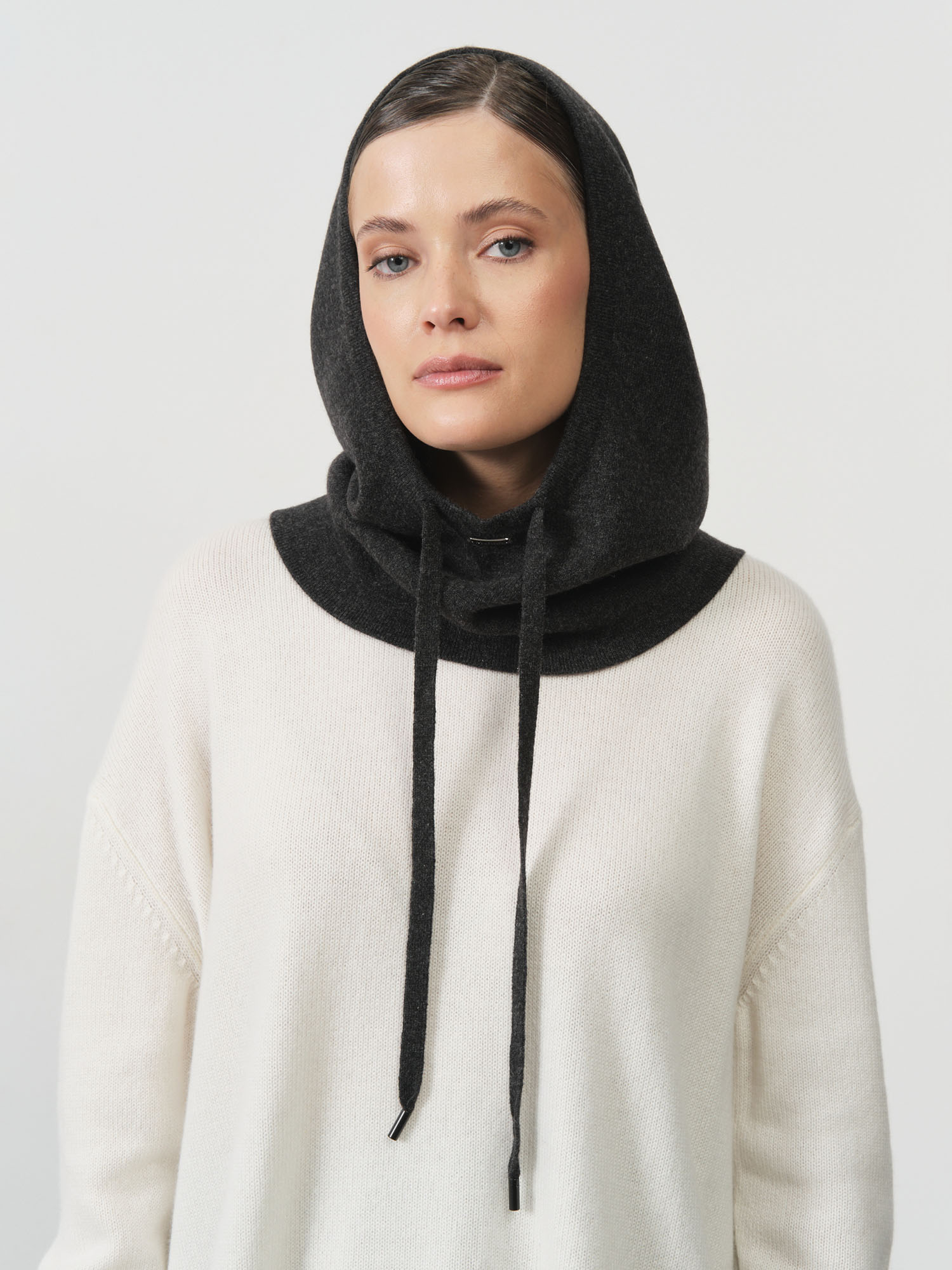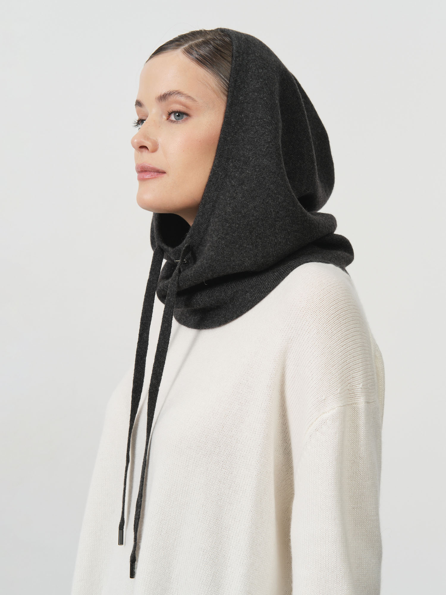 Мягко облегает голову, защищает уши и шею от холода. Посадка комфортная, без давления. Универсальный размер подходит большинству типов лица и позволяет носить капор как поверх причёски, так и на гладкие волосы.