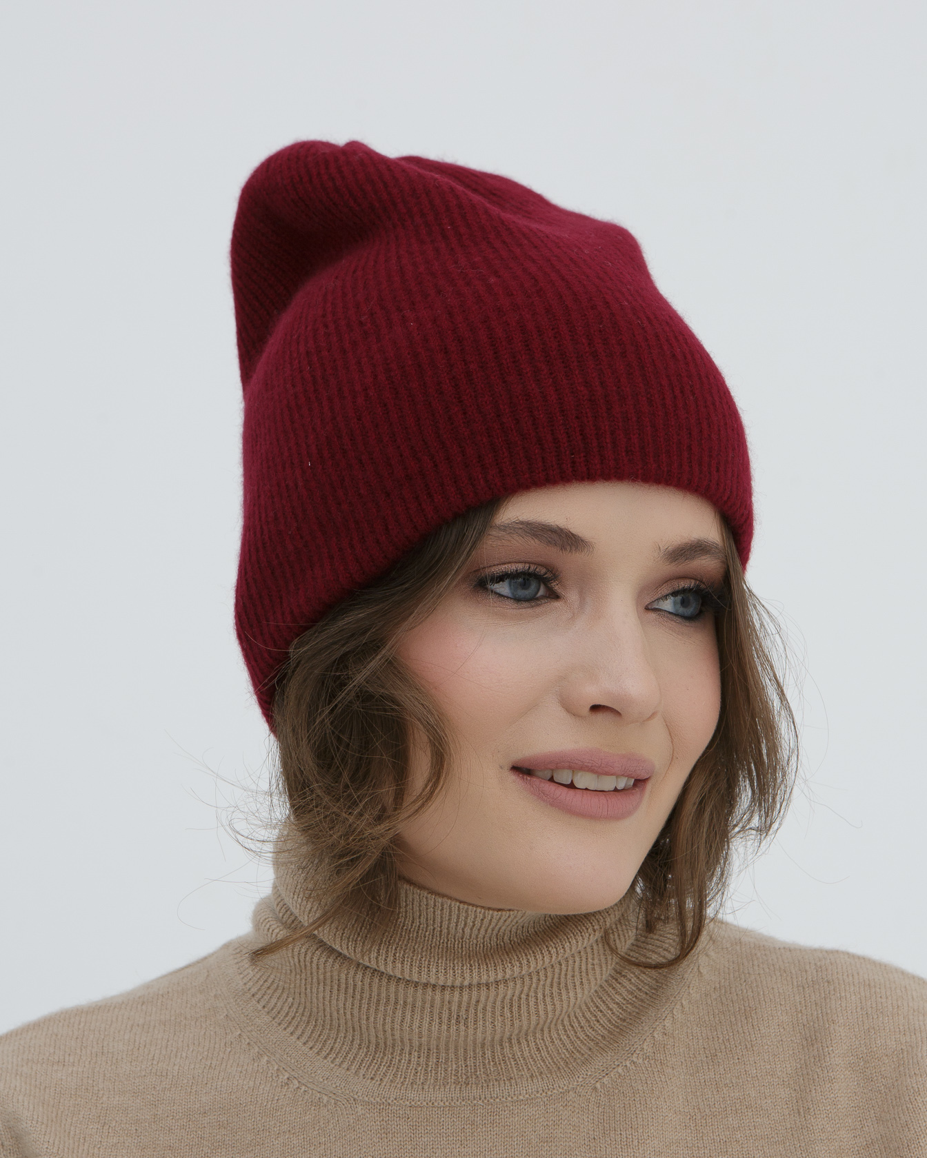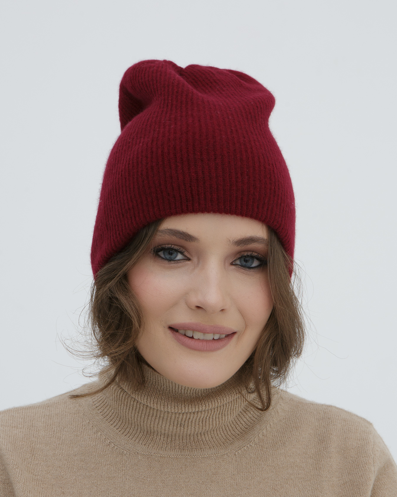 Шапка кашемировая двойная бордовая