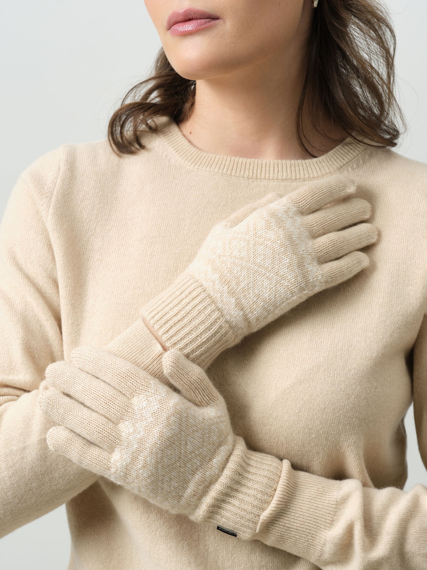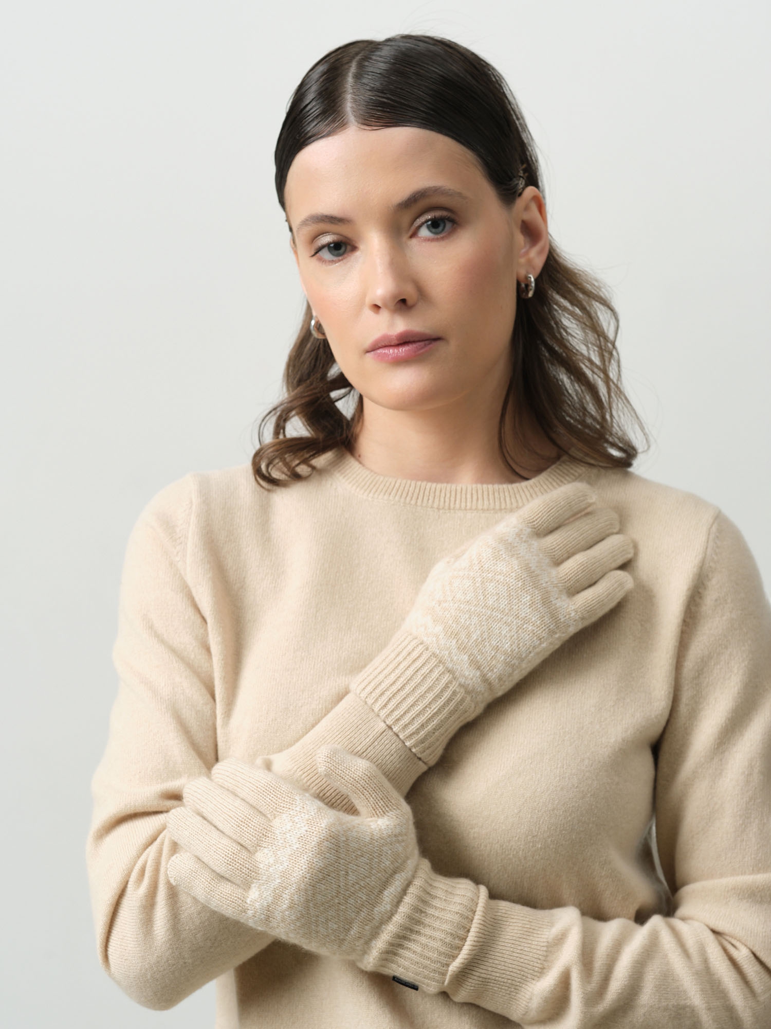 Перчатки выполнены из натурального кашемира — премиального материала с исключительной мягкостью и лёгкостью. Тонкое волокно эффективно сохраняет тепло, оставаясь «дышащим» и гипоаллергенным. Кашемир отличается высокой износостойкостью и сохраняет свои свойства на протяжении многих сезонов