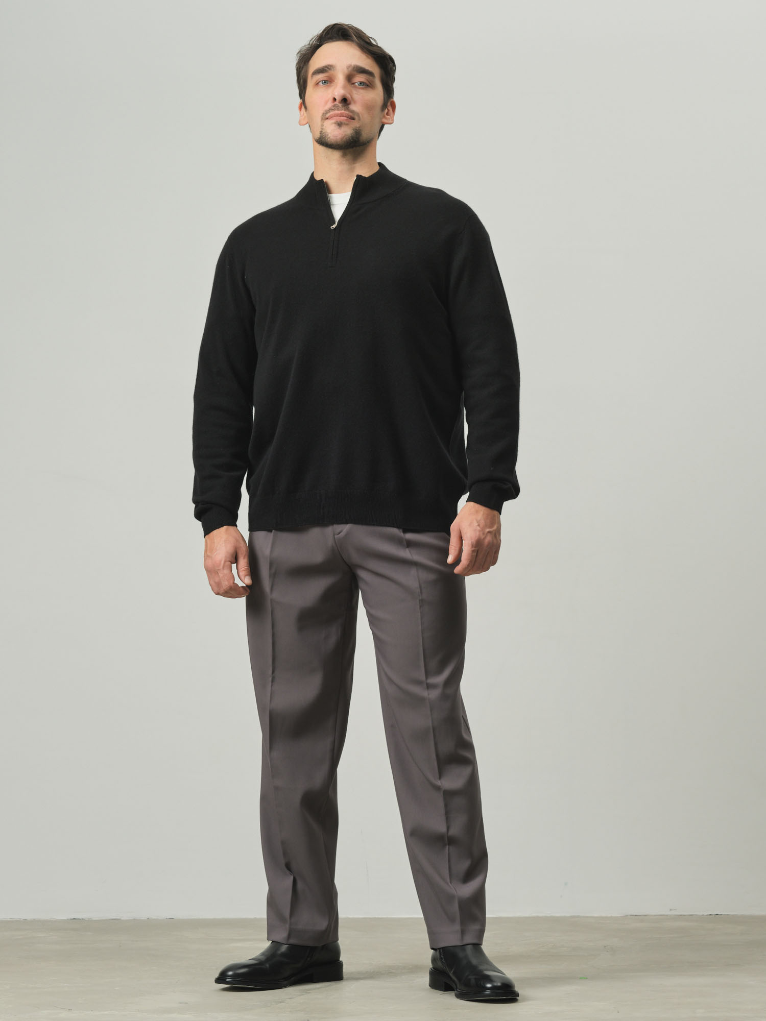 Мужской джемпер из кашемира с воротником на молнии — универсальная модель, сочетающая минимализм, комфорт и практичность. Подходит для повседневного и делового гардероба.