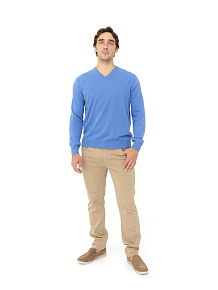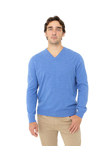 Мужской джемпер из кашемира синего цвета — это идеальное сочетание изысканного стиля и комфорта. Выполненный из 100% кашемира, этот джемпер отличается исключительной мягкостью и легкостью, обеспечивая тепло и уют в любую погоду. V-образный вырез придаёт модели элегантный и современный вид, позволяя легко комбинировать его с рубашками и брюками для создания как делового, так и повседневного образа. Синий цвет джемпера освежает и добавляет яркости в любой гардероб, подчеркивая уверенность и хороший вкус владельца. Этот джемпер — отличный выбор для стильных и требовательных мужчин.