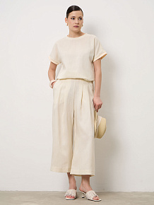 Кюлоты из тенселя 5012266 в сливочном оттенке — элегантная и современная модель для создания лёгких и стильных образов. Свободный крой и мягкая струящаяся ткань формируют красивый силуэт и обеспечивают комфорт в течение всего дня. Кюлоты легко сочетаются с блузами, топами, жакетами и трикотажем, создавая утончённые повседневные и деловые комплекты.