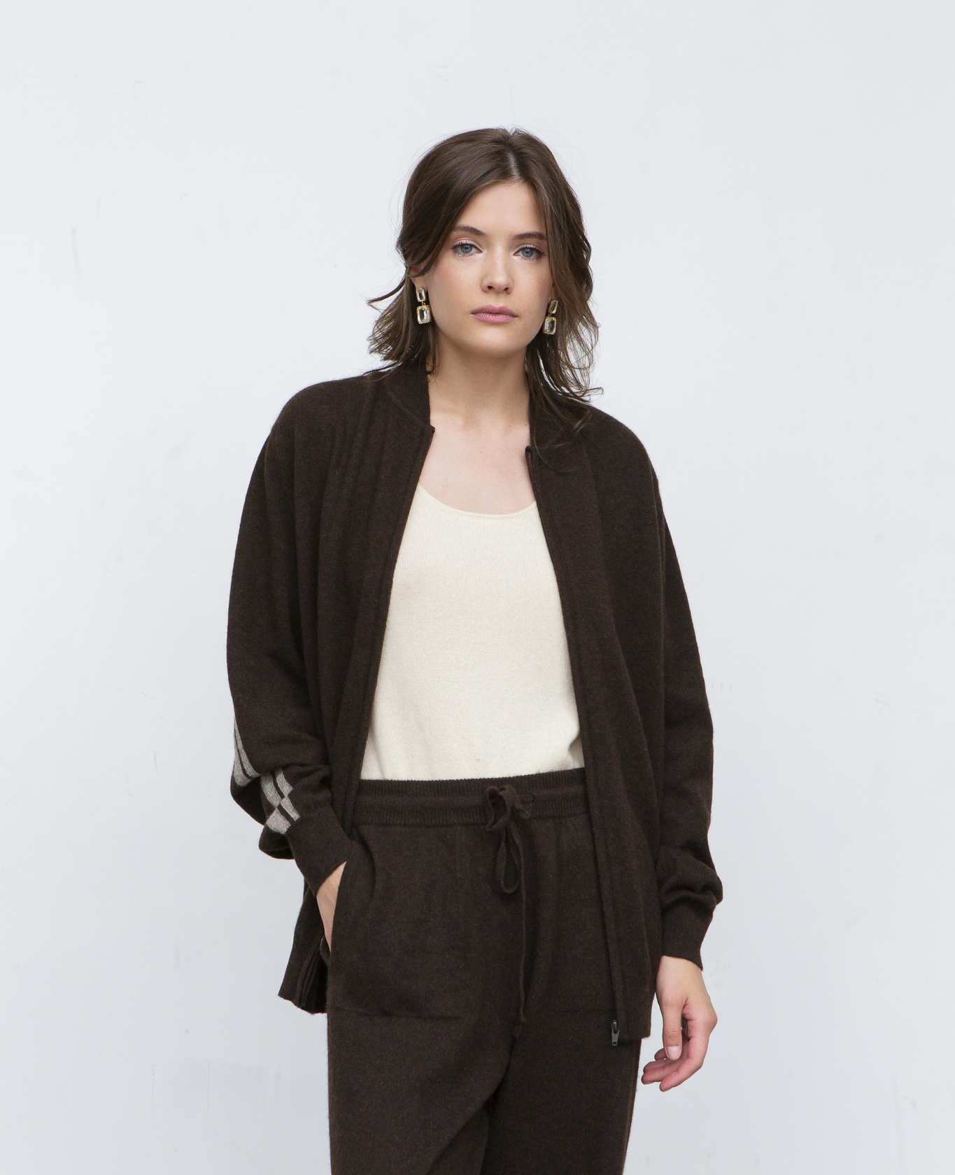 Тёмно-коричневый — глубокий и благородный оттенок, который подчёркивает натуральность материала и легко сочетается с базовой цветовой палитрой гардероба.