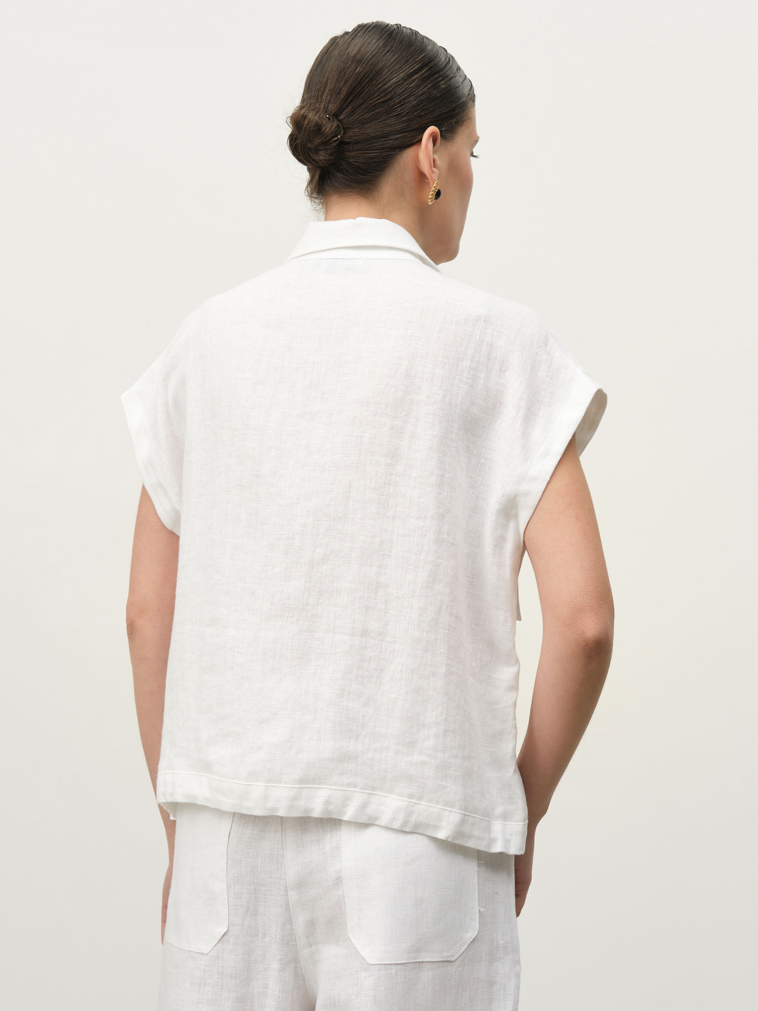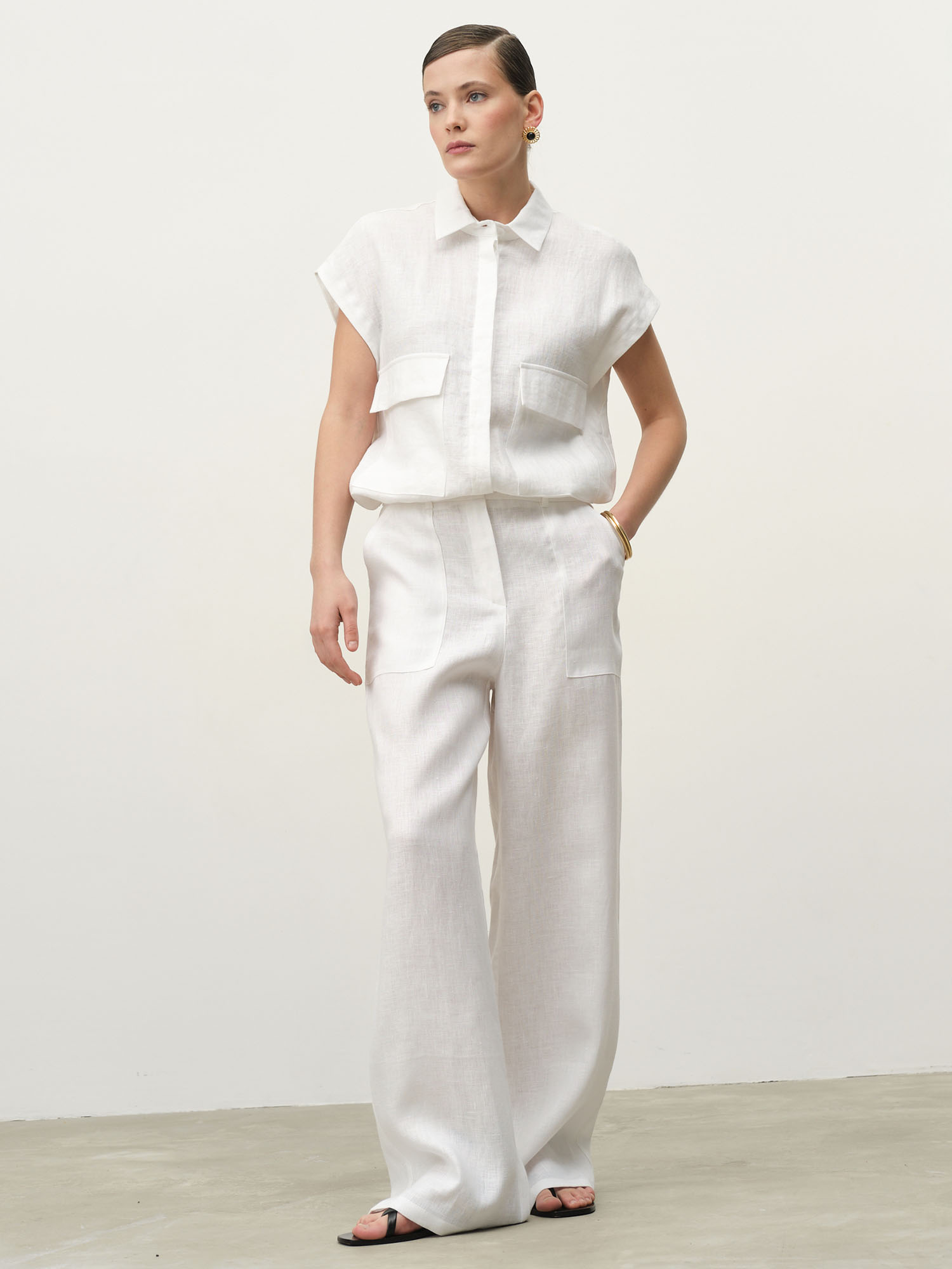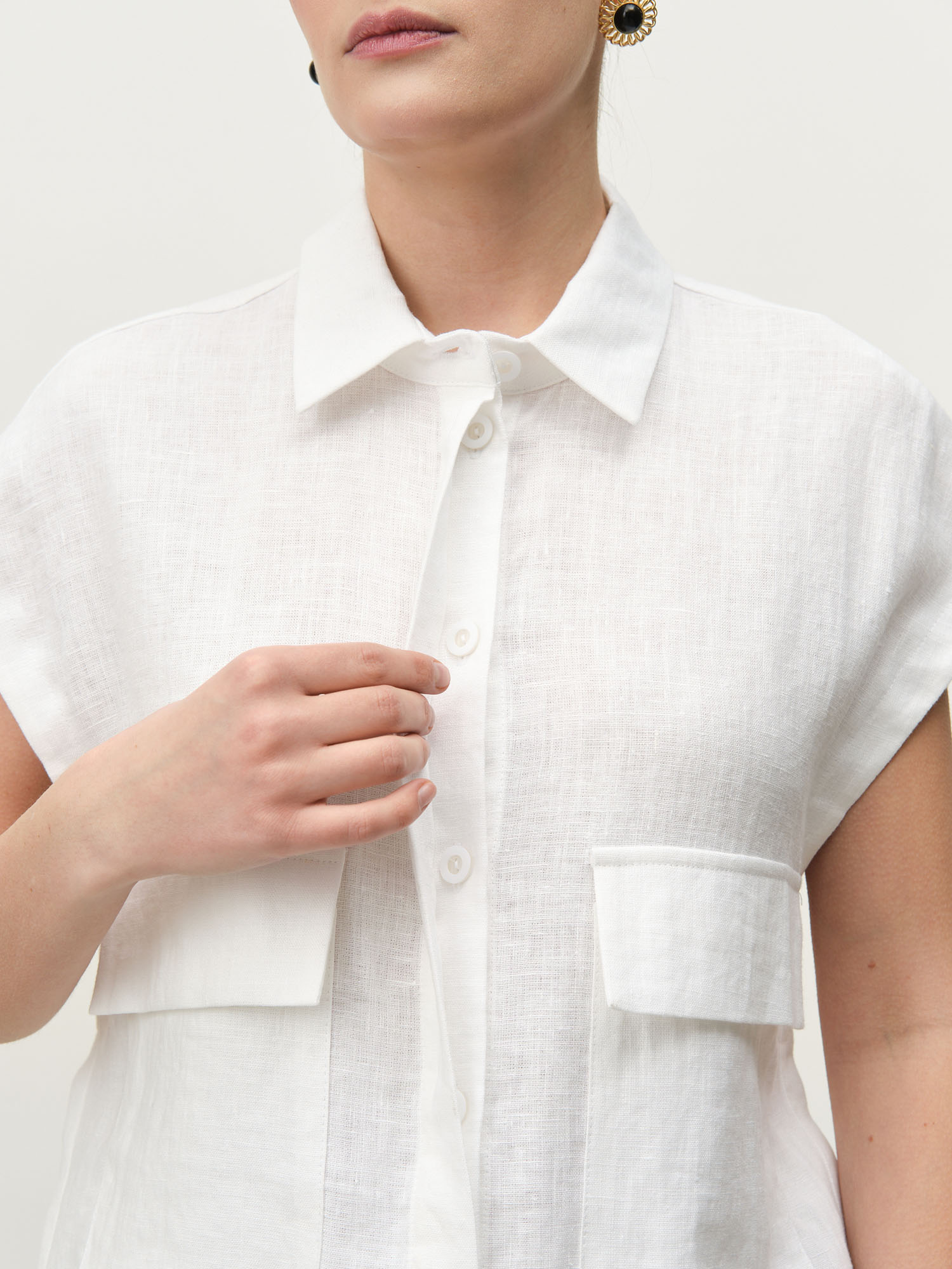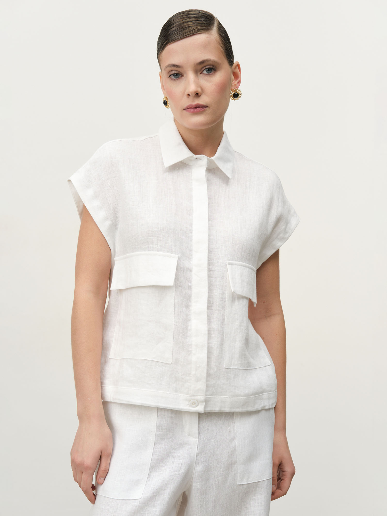 Женская блузка из льна — стильная и функциональная модель в современном утилитарном стиле. Идеально подходит для летнего гардероба, сочетая комфорт и актуальный дизайн.