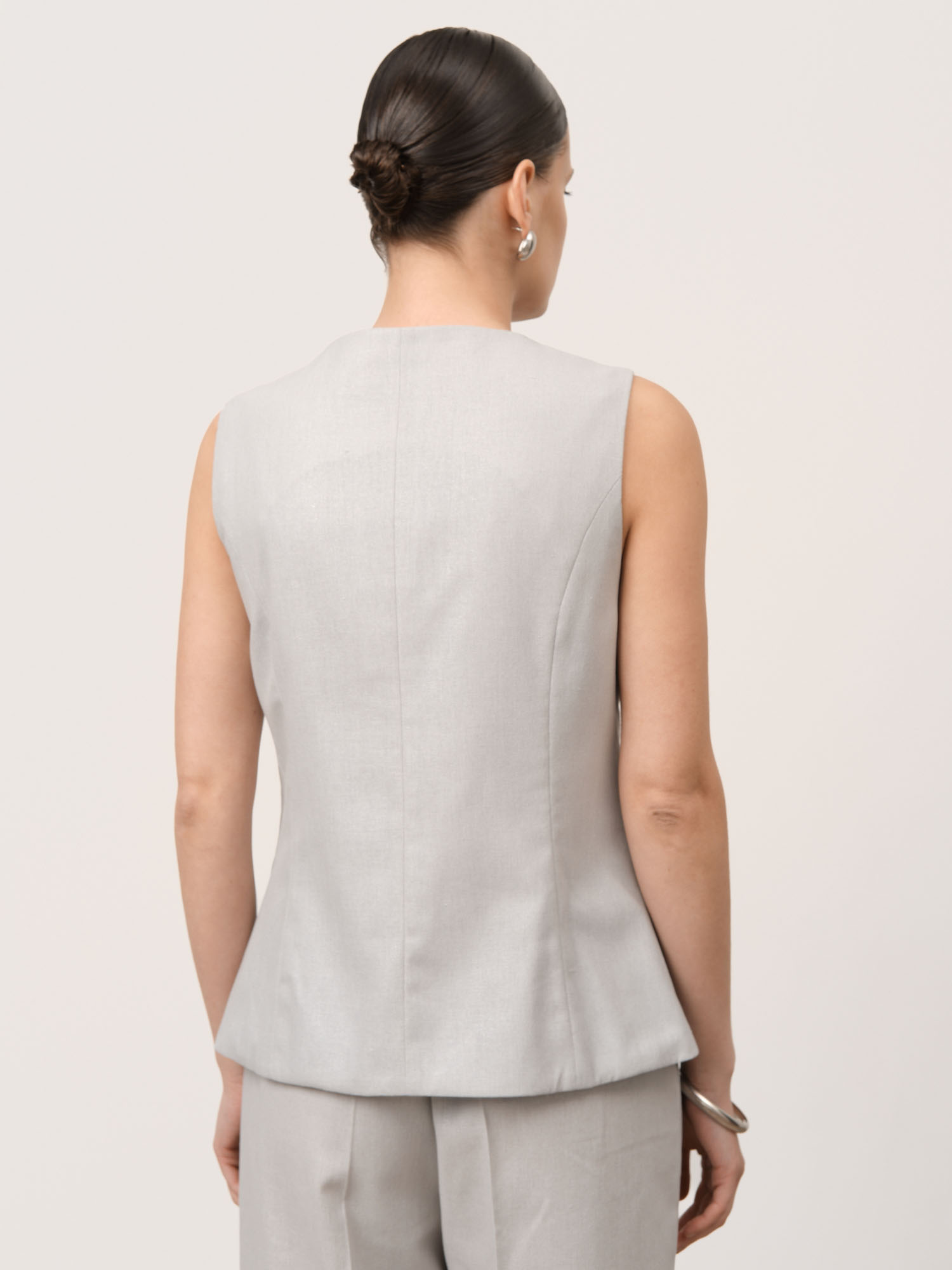 Отличный жилет для летнего сезона! Лён – идеальная ткань для жары, в нём комфортно даже в +30. |