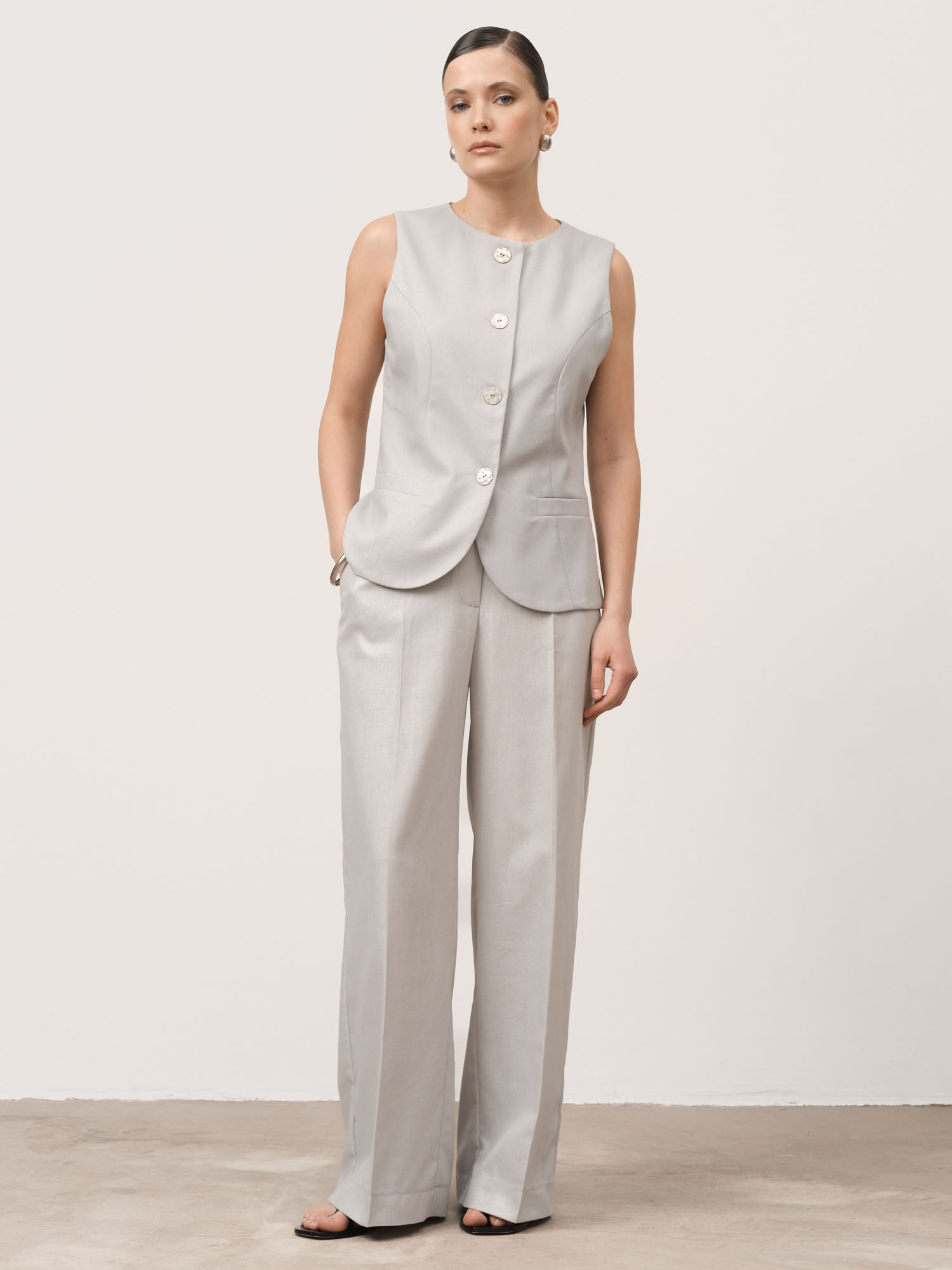 Шикарный жилет из натурального льна! Цвет серебро выглядит очень благородно и необычно. |