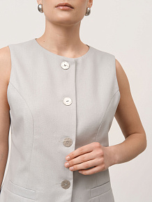 Приталенный силуэт с мягкими линиями, без рукавов. Классический крой с акцентом на минимализм и аккуратную посадку.
