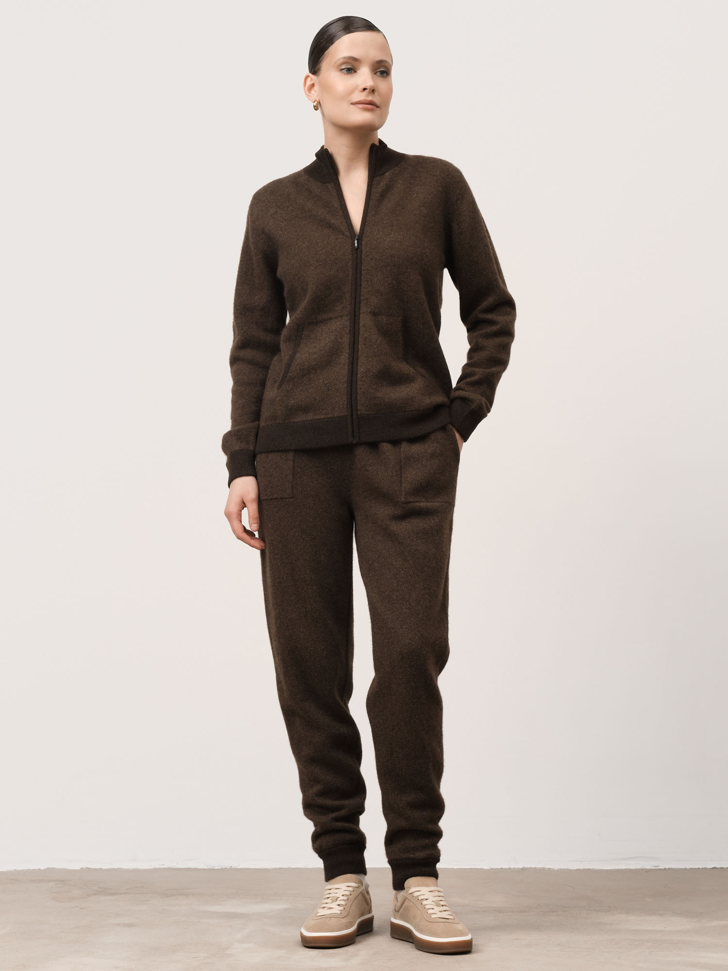 Глубокий коричневый меланж — тёплый и натуральный оттенок, добавляющий образу уют и стильную сдержанность.