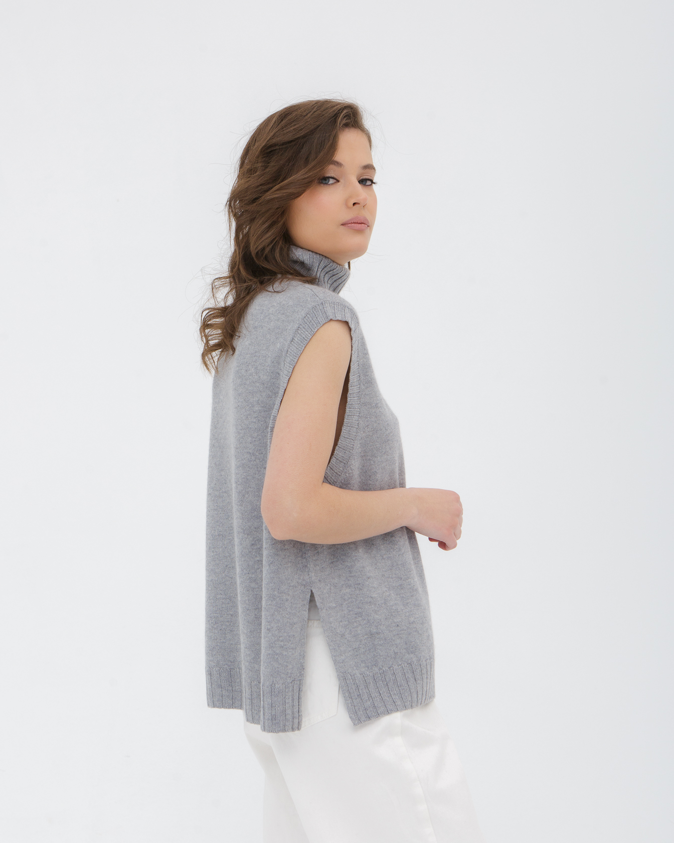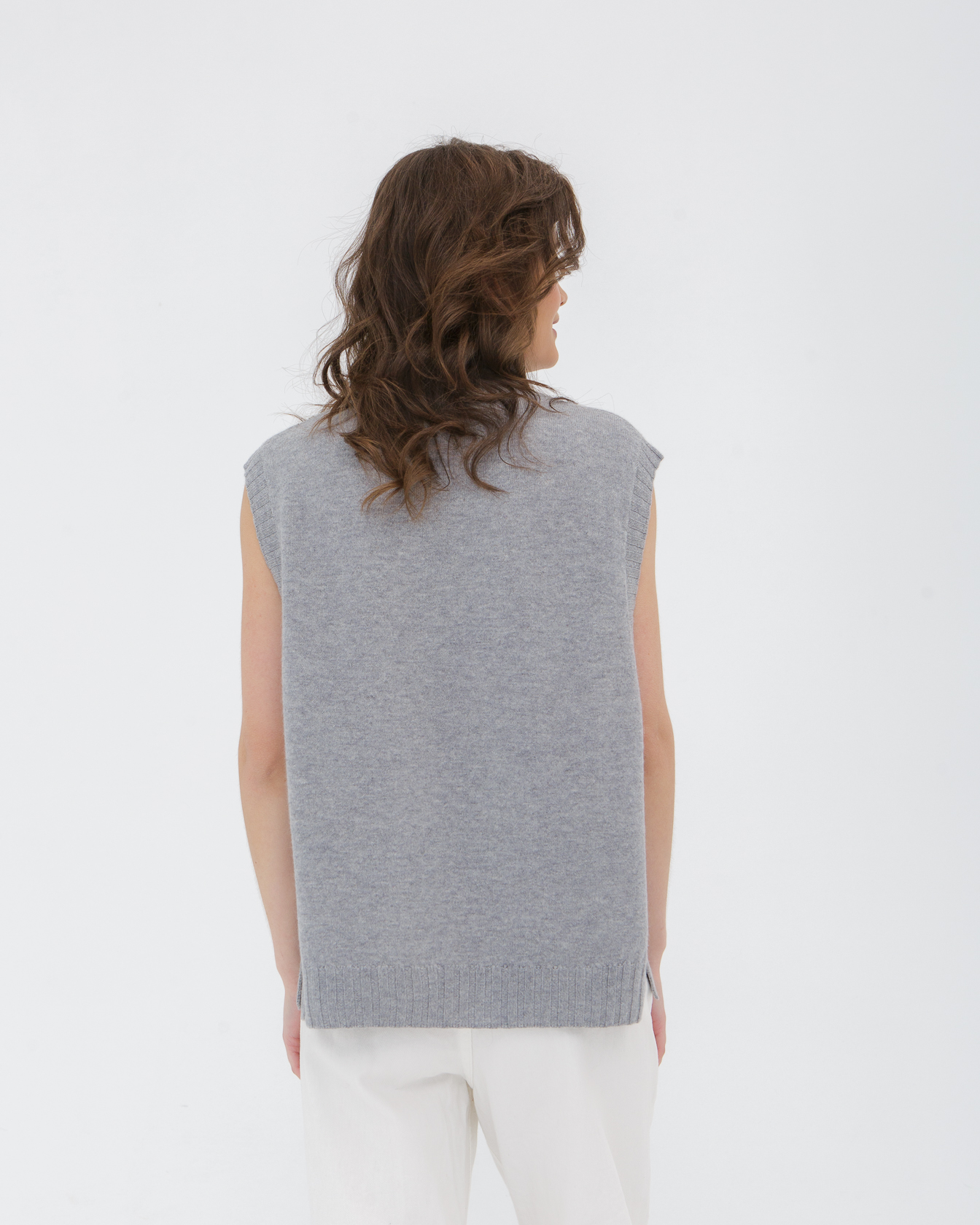 Кашемировый джемпер без рукавов — современная и элегантная модель, которая сочетает минималистичный стиль и комфорт натуральных материалов. Лаконичный силуэт и мягкая текстура делают изделие универсальным элементом гардероба, подходящим для повседневных и более утончённых образов. Джемпер отлично смотрится как самостоятельная вещь или в многослойных сочетаниях.