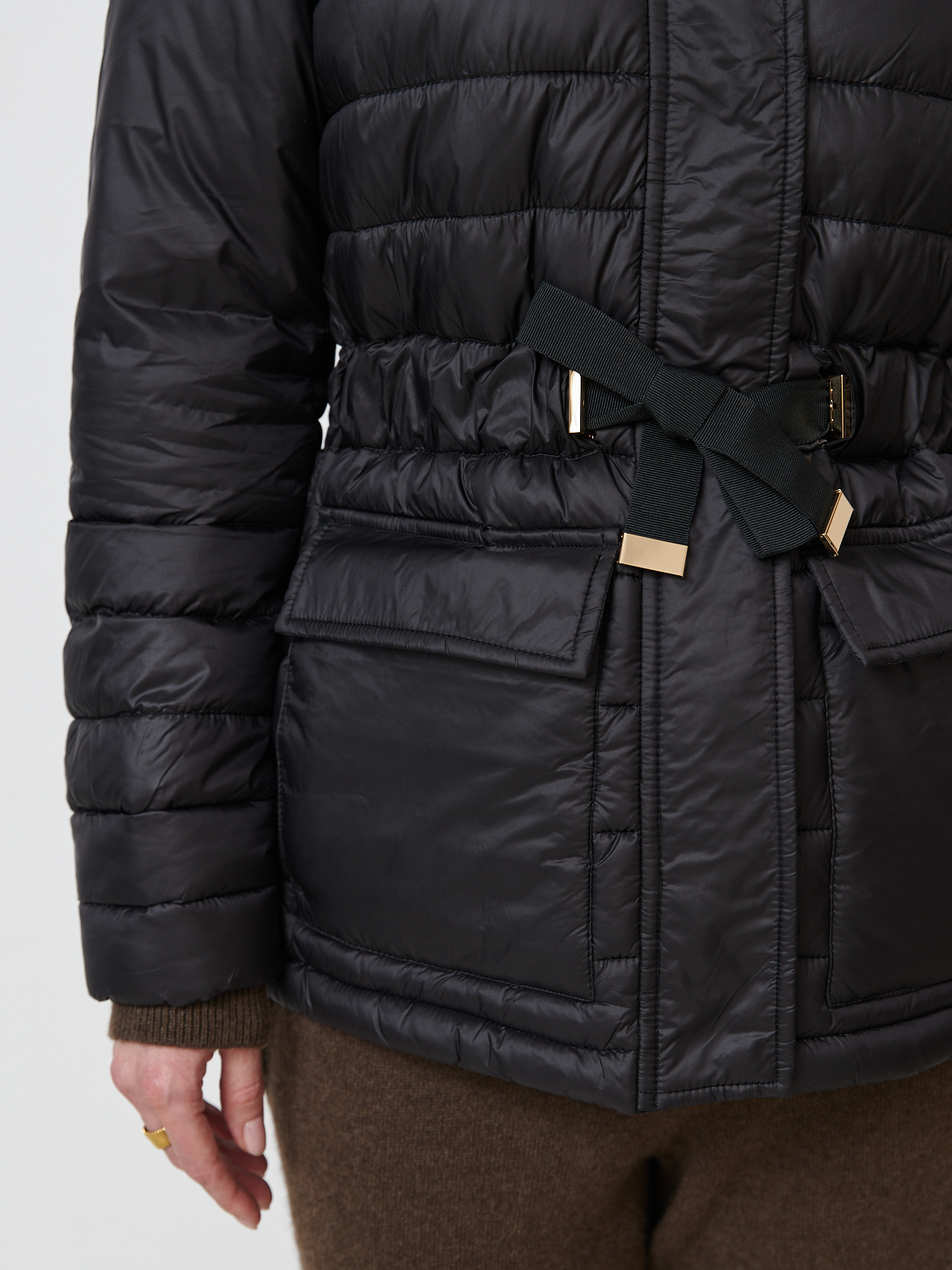 Стильная женская куртка черного цвета — идеальный выбор для прохладной погоды. Изготовлена из легкого и теплого материала, обеспечивающего комфорт и защиту от ветра. Куртка имеет удобный пояс, подчеркивающий талию и создающий женственный силуэт. В комплекте предусмотрены глубокие карманы на молниях для надежного хранения мелочей. Практичный дизайн и лаконичные линии делают эту куртку универсальной для повседневного гардероба.