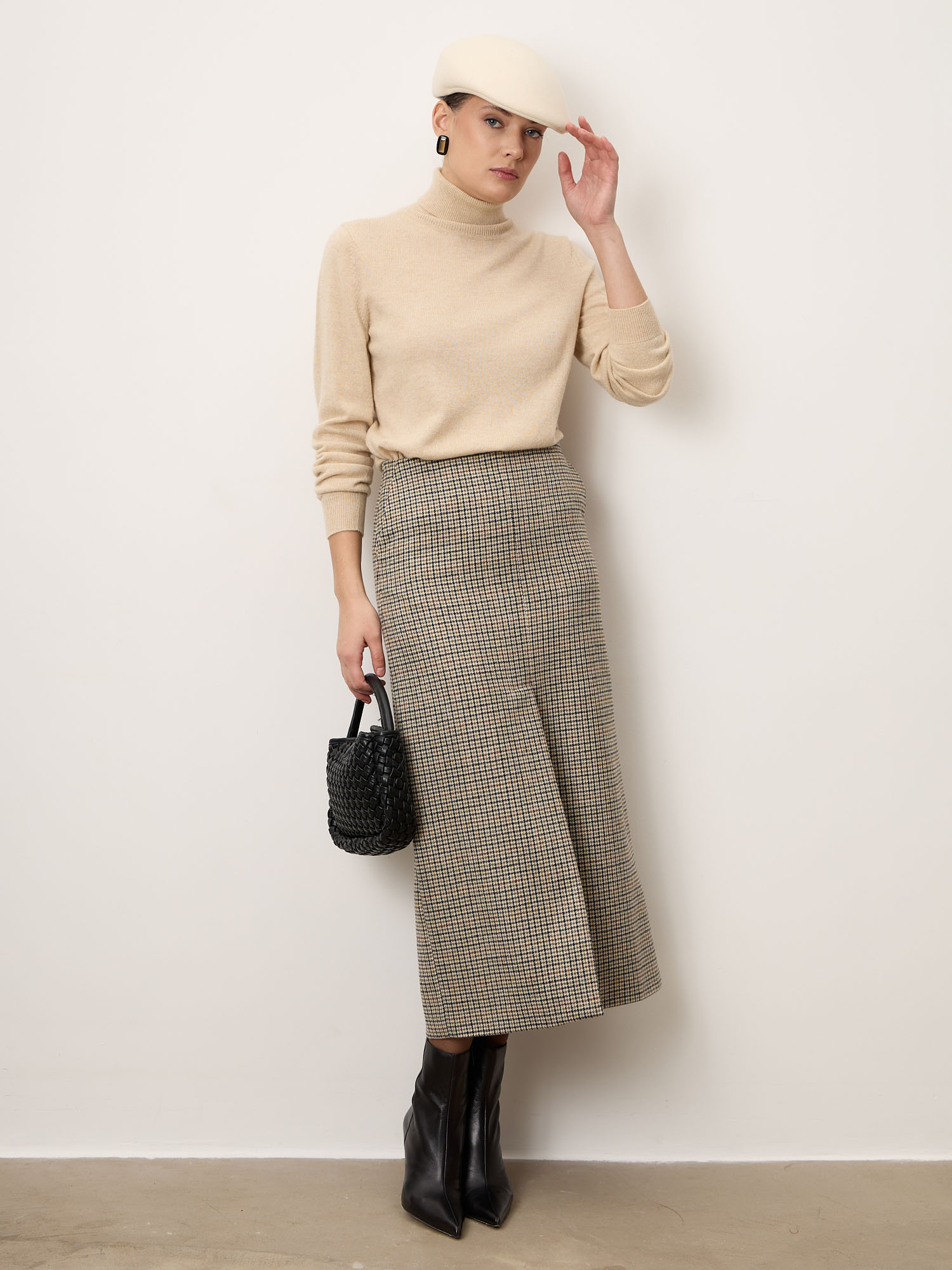 Бежевый — тёплый и универсальный оттенок, который подчёркивает натуральность кашемира и гармонично сочетается с базовой палитрой одежды.